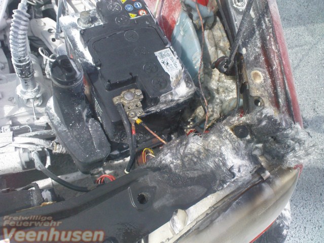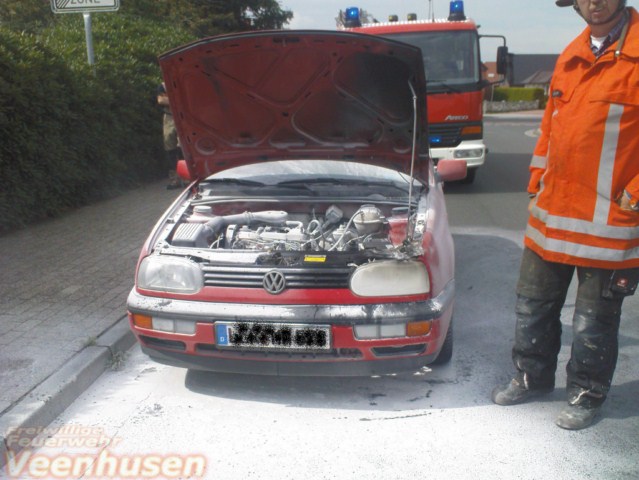 Ein Kamerad, der nach der Alarmierung auf dem Weg zum Feuerwehrgerätehaus fuhr, kam an der Einsatzstelle vorbei, und erkannte sofort das es sich hierbei um einen Entstehungsbrand handelte. Er reagierte sofort in dem er mit einem Pulverlöscher das Feuer schnell erfolgreich bekämpfen konnte. Damit konnte schlimmerer Schaden am Fahrzeug verhindert werden.