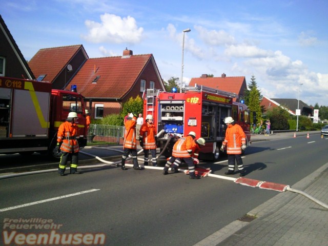 Die Leitstelle alarmierte die Wehren aus Veenhusen und Neermoor. Nach wenigen Minuten trafen die ersten Einsatzkräfte an der Einsatzstelle an.