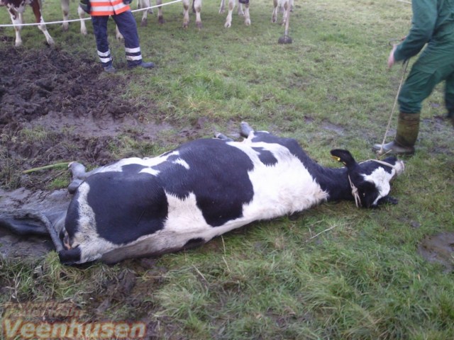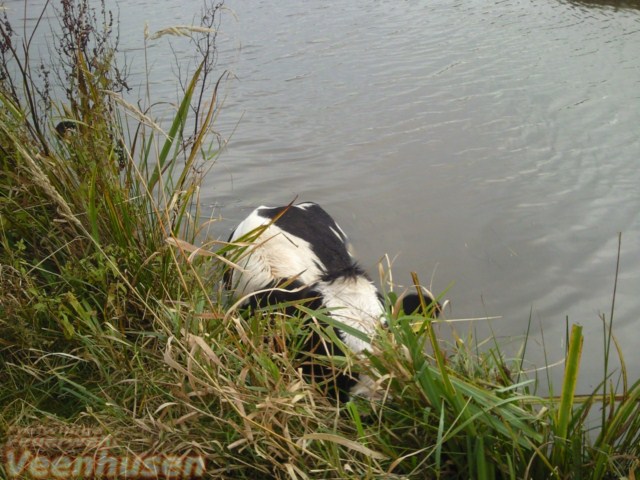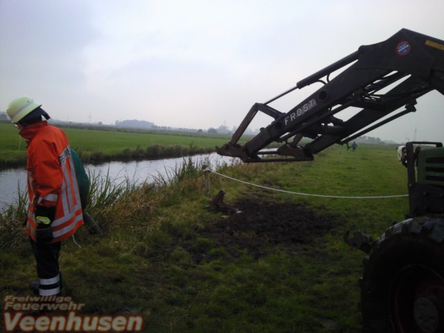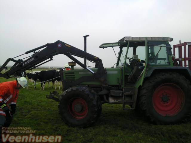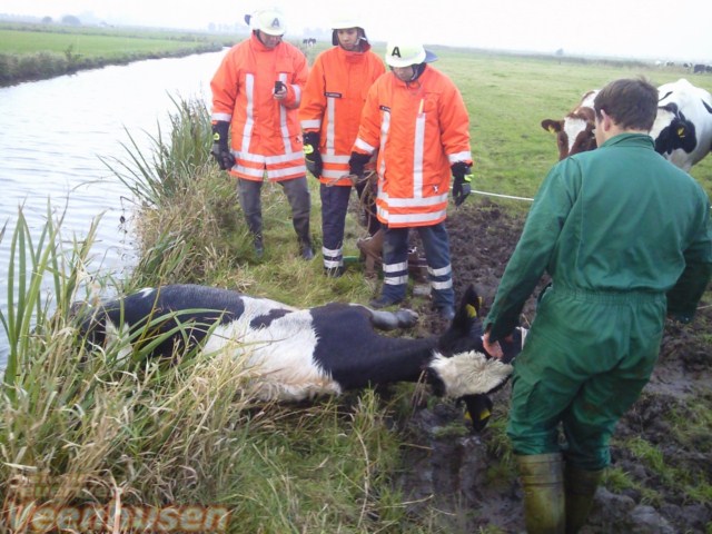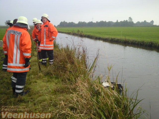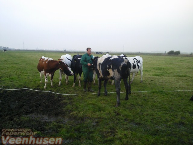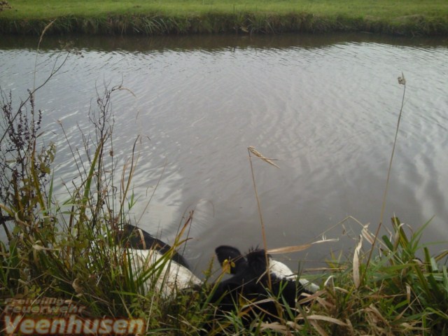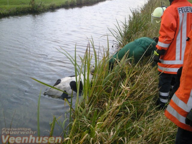 Veenhusen - In Veenhusen ist am Freitagnachmittag ein Tier in Notlage geraten. Auf einer Weide an der Mentewehrstraße war eine Kuh wohl zu nahe an das Ufer eines Verbindungskanals getreten und ins Wasser gestürzt. Ein Passant entdeckte das Tier im Wasser und rief die Leitstelle an. Die Disponentin alarmierte umgehend die Feuerwehr Veenhusen, die nach wenigen Minuten mit dem Löschgruppenfahrzeug vor Ort waren. Etwa 70m von der Straße entfernt war die Kuh ins Wasser gestürzt. Nach rund 45 Minuten hatten die Kameraden die Kuh aus dem Wasser gerettet und der Einsatz konnte beendet werden.