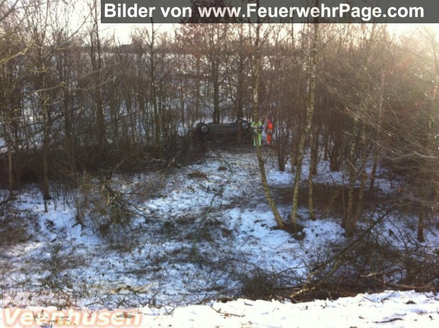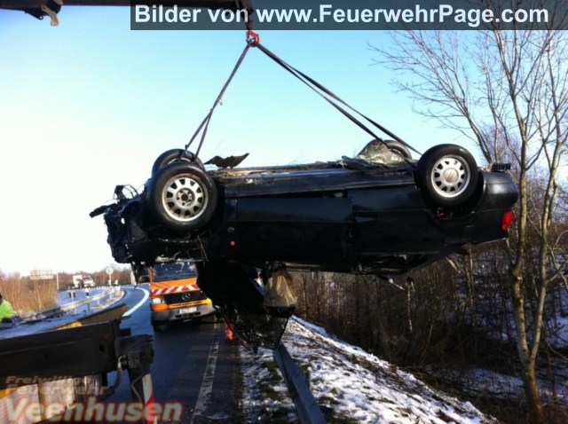 Im Dreieck Leer, in der Schleife Veenhusen in Richtung Leer Nord, war ein PKW von der Fahrbahn abgekommen. Der Wagen war von der Autobahn in die Böschung geflogen, und blieb auf dem Dach liegen. Eine Person hierbei in dem Auto eingeklemmt.