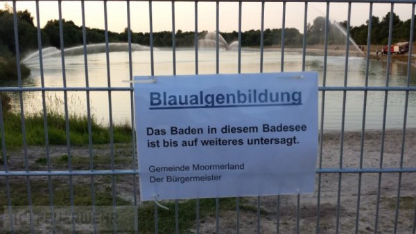 Der neue Badesee 'Die Blaue Lagune' musste kurzfristig für Badegäste geschlossen werden, weil man eine zu hohe Belastung des Wassers von der sogenannten „Blaualge“ festgestellt hat. Diese Art von Bakterien sind für den Menschen giftig (siehe unten).