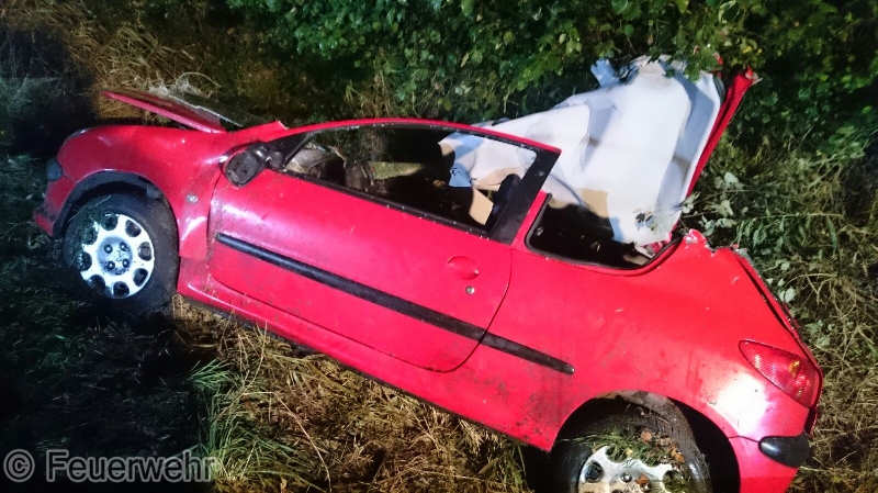 Gegen 05:30 Uhr am Freitagmorgen war es auf der Heisfelder Straße in Nüttermoor zu einem schweren Verkehrsunfall gekommen. Ein 44-jähriger Mann war mit seinem Kleinwagen aus noch ungeklärter Ursache, zwischen der Zufahrt zum Flugplatz und Altschwoog, nach rechts von der Straße abgekommen. Der Peugeot überschlug sich dann und kam erst 100 Meter weiter im Graben zum stehen. Das Dach des Autos war gegen die Böschung geprallt und dabei eingedrückt worden. Ersthelfer setzten sofort einen Notruf ab.