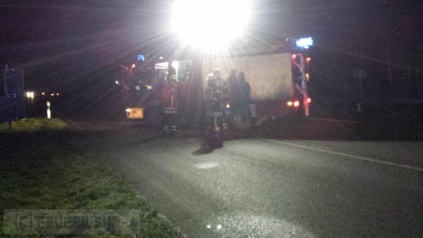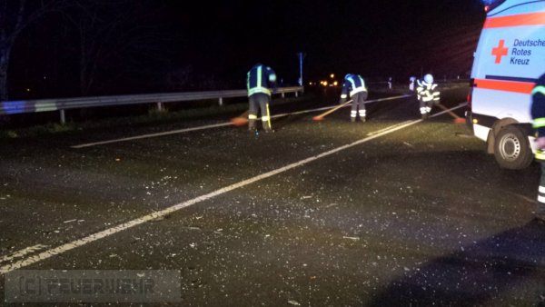 Ausgelaufende Betriebstoffe auf einer Länge von ca. 50 mtr. wurden anschließend von einer Spezialreinigungsfirma von der Straße entfernt.