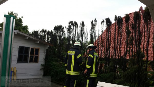 Veenhusen - Dunkler Rauch stieg am Freitagabend, kurz nach dem Abpfiff des Viertelfinalspiels Deutschland gegen Frankreich, im Mittelweg in Veenhusen auf. Eine Hecke zwischen zwei Häusern war plötzlich in Brand geraten. Bei der Regionalleitstelle Ostfriesland gingen binnen weniger Minuten diverse Notrufe ein. Die Feuerwehren aus Veenhusen und Neermoor wurde alarmiert. Unter dessen hatten die Anwohner der beiden Nachbargrundstücke mit Gartenschläuchen bereits selber zu löschen angefangen. Ein dritter Nachbar eilte noch mit einem Feuerlöscher herbei. Dadurch war das Feuer beim Eintreffen der ersten Kräfte bereits unter Kontrolle. Die Feuerwehr übernahm die Löscharbeiten und erstickte dann auch die letzten Flammen und Glutnester. Die Hecke wurde auf einer Länge von rund 20 Metern zerstört, zudem wurde ein Gartenhaus in Mitleidenschaft gezogen. Der Einsatz der beiden Feuerwehren war nach rund 30 Minuten beendet.